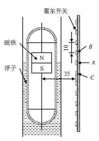 算出磁性浮子的磁場分布,根據(jù)測量精確度、霍爾開關(guān)的磁場強度閡值、霍爾開關(guān)到浮子的距離等己知條件計算出浮子內(nèi)磁鐵的大小,簡化了工藝流程,減少了工作量。在程序設(shè)計時,