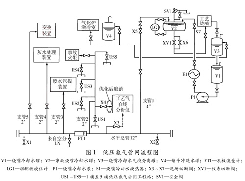 (1) 通過對(duì)低壓氮?dú)夤芫W(wǎng)的分析、排查得知,V2出水閥門(X6、XV1)內(nèi)漏導(dǎo)致V2滿液后水經(jīng)X5閥進(jìn)入了低壓氮?dú)馑娇偣?,使氮?dú)饴饵c(diǎn)升高。