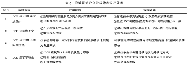 纜式導(dǎo)波雷達(dá)液位計(jì)在一年多的運(yùn)行過程中,與磁翻板液位計(jì)測(cè)量比較完全一致,性能穩(wěn)定,沒有出現(xiàn)任何故障,是理想的液氨儲(chǔ)罐液位測(cè)量?jī)x表。儀表通過4~20mA DC電流信號(hào)隔離輸出,送至中央控制室DCS顯示。