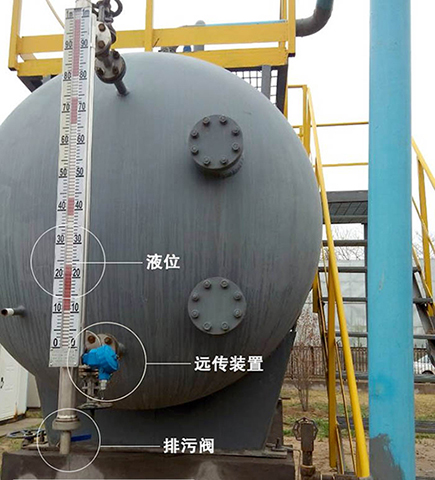 l、側(cè)裝式液位計(jì)與被測(cè)容器的上下分液管間*好各裝一只截止閥門以便打開或關(guān)閉液位計(jì);另一方面為維修液位計(jì)帶來(lái)方便。在上下截止閥關(guān)閉時(shí)可打開液位計(jì)底部排污法蘭或卸下排污螺釘,注入清水即可清洗液位計(jì)的主體。