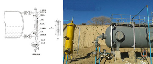 2、在罐內(nèi)不帶壓力的狀態(tài)下以手動方式往儲罐內(nèi)注水,當(dāng)水位略高于液位計進水管時停止注水,尿素溶液液位計打開下連接法 蘭口手動球閥E并松開罐體與被校液位計間的連接法蘭F(不取下,使水流不過沖),直到管 路中 無涌動流時,關(guān)閉E,取下法蘭,待罐內(nèi)液體平穩(wěn)時打開E,再待呈滴流狀態(tài),穩(wěn)定1min(必要 時可通過排水閥門排水,提高檢測效率);