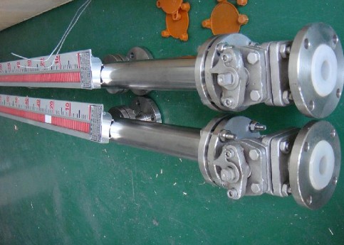 液位計(jì)根據(jù)浮力原理,浮子在測(cè)量管內(nèi)隨液位的升降而上下移動(dòng),浮子內(nèi)的永久磁鋼通過(guò)磁耦合作用,驅(qū)動(dòng)紅、白色翻柱翻轉(zhuǎn)180’液位上升時(shí),翻柱由白色轉(zhuǎn)為紅色,下降時(shí),翻柱由紅色轉(zhuǎn)為白色,從而實(shí)現(xiàn)液位的指示。