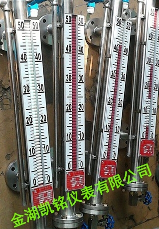 2.液位計(jì)安裝完畢后,需用磁鋼進(jìn)行校正,對(duì)磁翻柱導(dǎo)引一次,使零位以下顯示有紅色,零位以上顯示為白色。