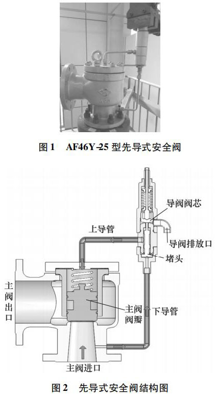 凝結(jié)水液位計(jì)常見(jiàn)的故障包括: 主閥導(dǎo)閥泄漏、導(dǎo)閥超壓不動(dòng)作、主閥未隨導(dǎo)閥動(dòng)作。主閥導(dǎo)閥泄漏失效原因: 密封面臟污或損傷,零部件卡阻、密封墊圈老化變形; 導(dǎo)閥超壓不動(dòng)作失效原因: 導(dǎo)閥密封面銹蝕粘合或材料變形、導(dǎo)閥彈簧過(guò)緊或卡阻、導(dǎo)閥下導(dǎo)管堵塞; 主閥未隨導(dǎo)閥動(dòng)作失效原因: 主閥運(yùn)動(dòng)卡阻、導(dǎo)閥排氣量過(guò)小。然而,安全閥起跳不回座故障在試驗(yàn)過(guò)程及工業(yè)現(xiàn)場(chǎng)也是非常常見(jiàn)的,國(guó)內(nèi)對(duì)于凝結(jié)水液位計(jì)起跳不回座失效分析的相關(guān)研究較少。本研究以某公司生產(chǎn)的 AF46Y-25 型凝結(jié)水液位計(jì)為研究對(duì)象,研究導(dǎo)閥結(jié)構(gòu)并分析其動(dòng)作過(guò)程。在對(duì)其開(kāi)展動(dòng)作性能試驗(yàn)時(shí),發(fā)現(xiàn)該安全閥實(shí)際回座壓力遠(yuǎn)低于標(biāo)準(zhǔn)要求,排放時(shí)間過(guò)長(zhǎng),回座失效。因此,對(duì)其進(jìn)行受力分析,以探討回座失效的原因。