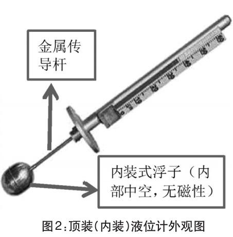 該區(qū)塊集氣站使用的是地埋污水罐,主要作用是對集氣站內(nèi)生產(chǎn)污水進(jìn)行沉降。在運(yùn)行過程中,冷凝水液位計(jì)故障導(dǎo)致顯示數(shù)據(jù)不準(zhǔn),一方面對污水液位情況掌握不準(zhǔn)確,另一方面會出現(xiàn)不安全因素,甚至安全事故。該井區(qū)地埋污水罐使用的液位計(jì)為頂裝式磁翻板(磁浮子)液位計(jì),根據(jù)液位計(jì)磁性材質(zhì)所在位置的不同冷凝水液位計(jì)也稱為內(nèi)裝式磁翻板液位計(jì)。