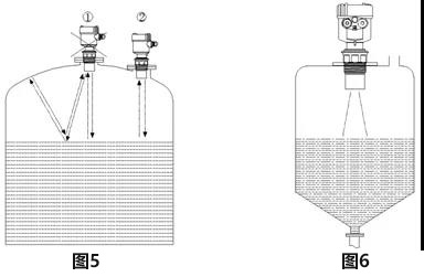 6、對于頂部為平面的錐形容器,污水池液位計(jì)應(yīng)盡量安裝在頂部中央,這樣可以保證測量到容器底部,如圖6所示。